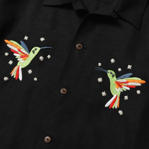 ONPUとともに今期のアイコニックなアートワーク「MARIACHI」 ハチドリを胸に、バックにマリアッチをカラフルな刺繍で表現したオープンカラーシャツです。