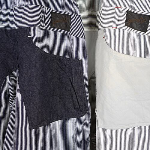 定番のオーバーオール のヒッコリーと無地デニムの2TONE ver.